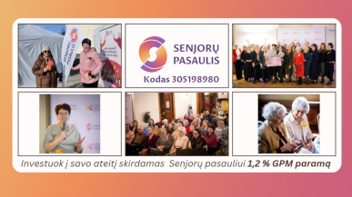 Skirkite 1,2 % GPM paramą „Senjorų pasauliui“ – kartu kurkime orią ateitį!